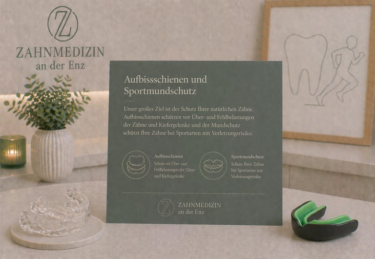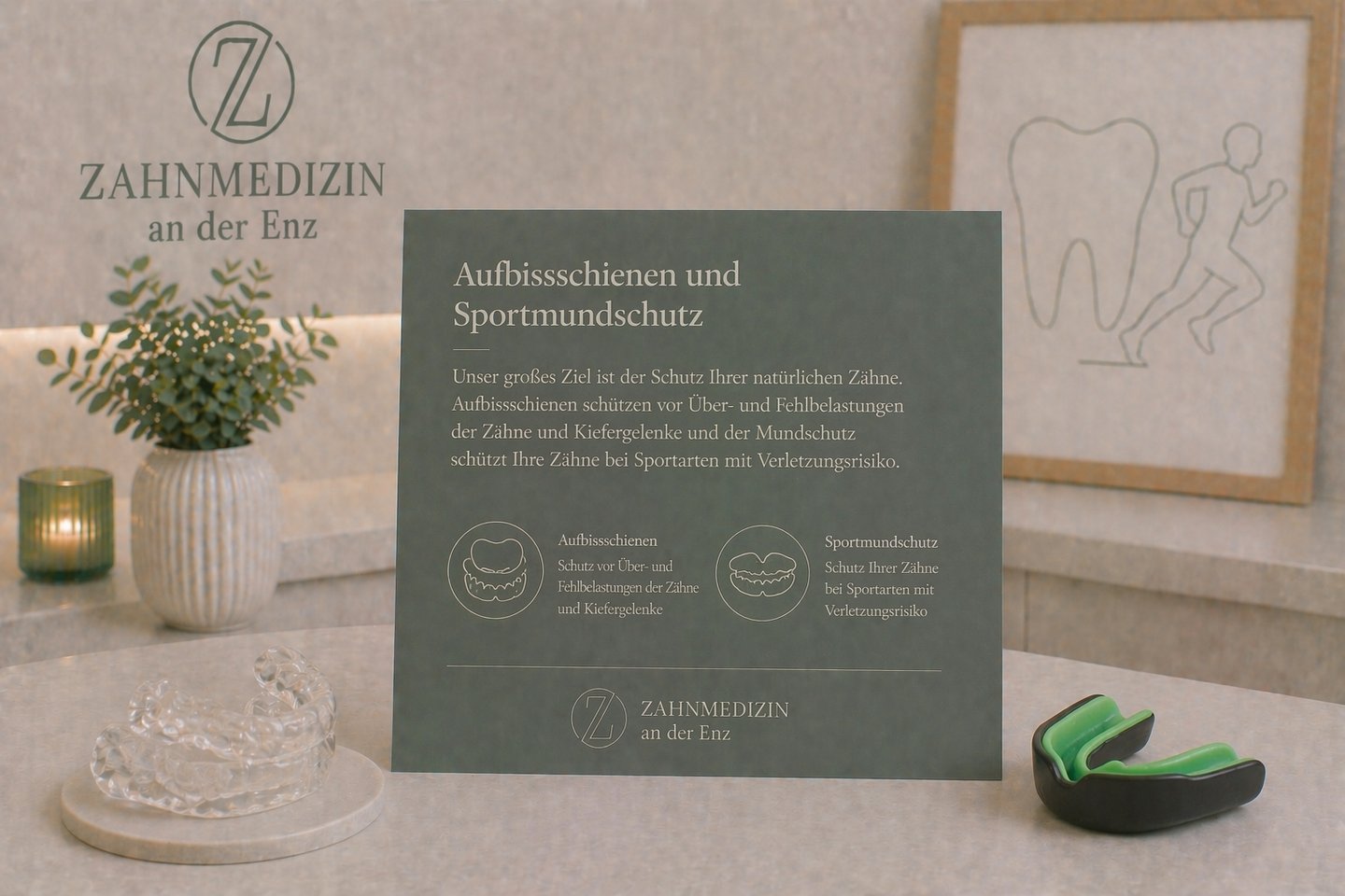 Unser großes Ziel ist der Schutz Ihrer natürlichen Zähne. Aufbissschienen schützen vor Über- und Fehlbelastungen der Zähne und Kiefergelenke und der Mundschutz schützt Ihre Zähne bei Sportarten mit Verletzungsrisiko.