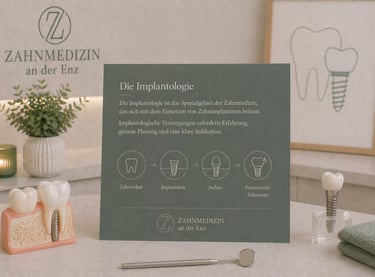 Die Implantologie ist das Spezialgebiet der Zahnmedizin, das sich mit dem Einsetzen von Zahnimplantaten befasst.
