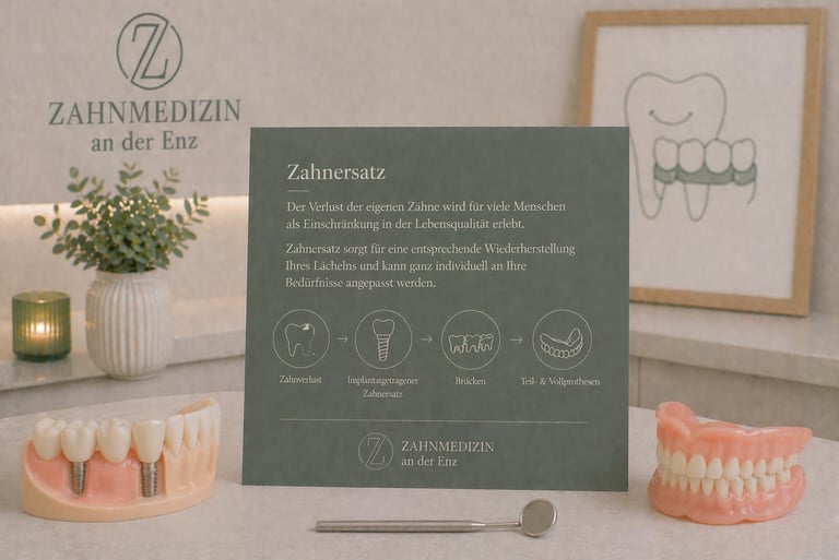 Der Verlust der eigenen Zähne wird für viele Menschen als Einschränkung in der Lebensqualität erlebt. Zahnersatz sorgt für eine entsprechende Wiederherstellung Ihres Lächelns und kann ganz individuell an Ihre Bedürfnisse angepasst werden.