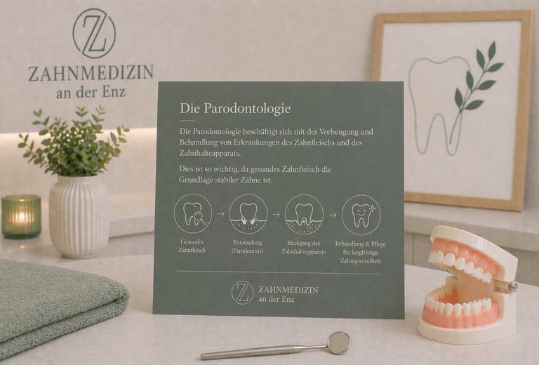 Die Parodontologie beschäftigt sich mit der Vorbeugung und Behandlung von Erkrankungen des Zahnfleischs und des Zahnhalteapparats.